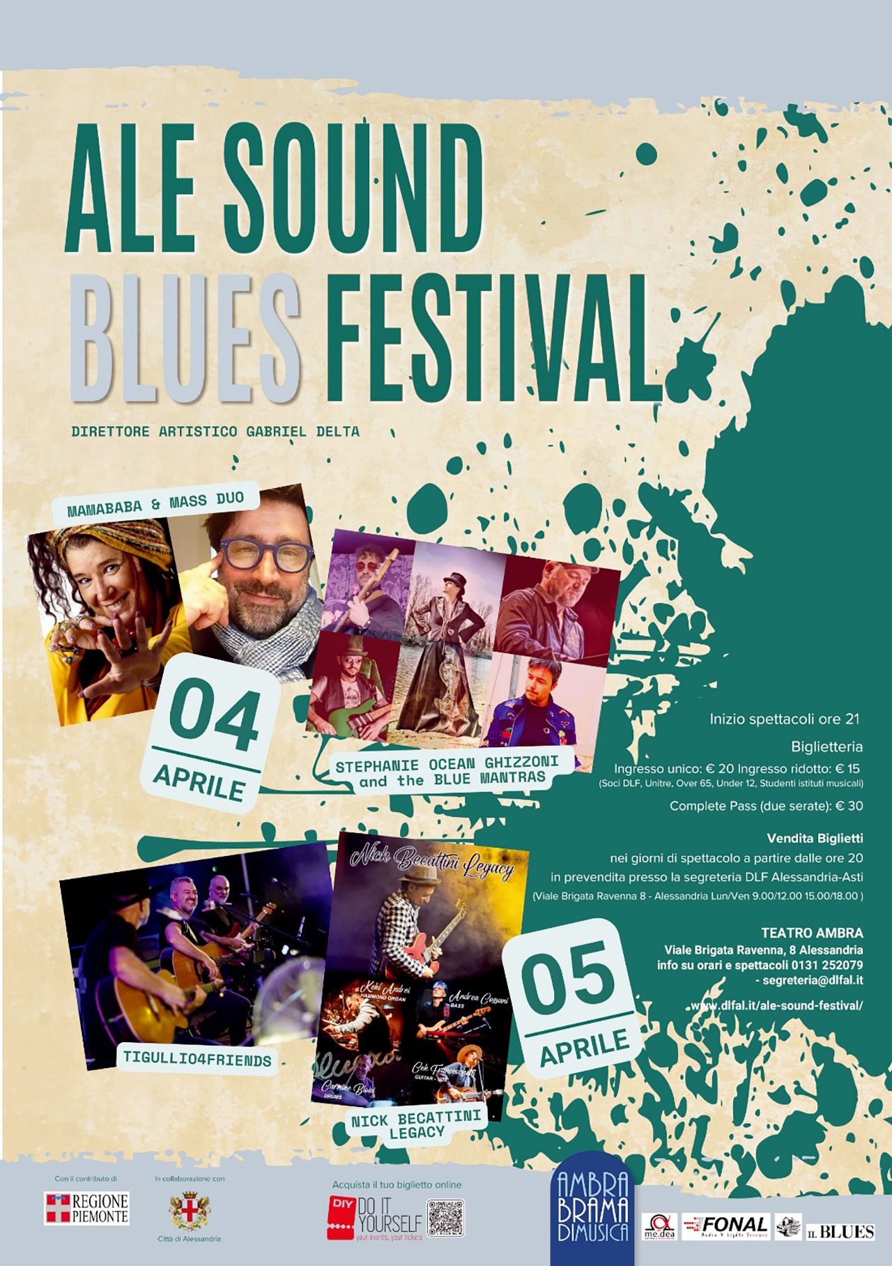 Siamo lieti di informare che è tutto pronto per la terza edizione del Ale Sound Festival Blues Edition 2025, le date sono venerdì 4 e sabato 5 aprile presso il Teatro Ambra di Alessandria.